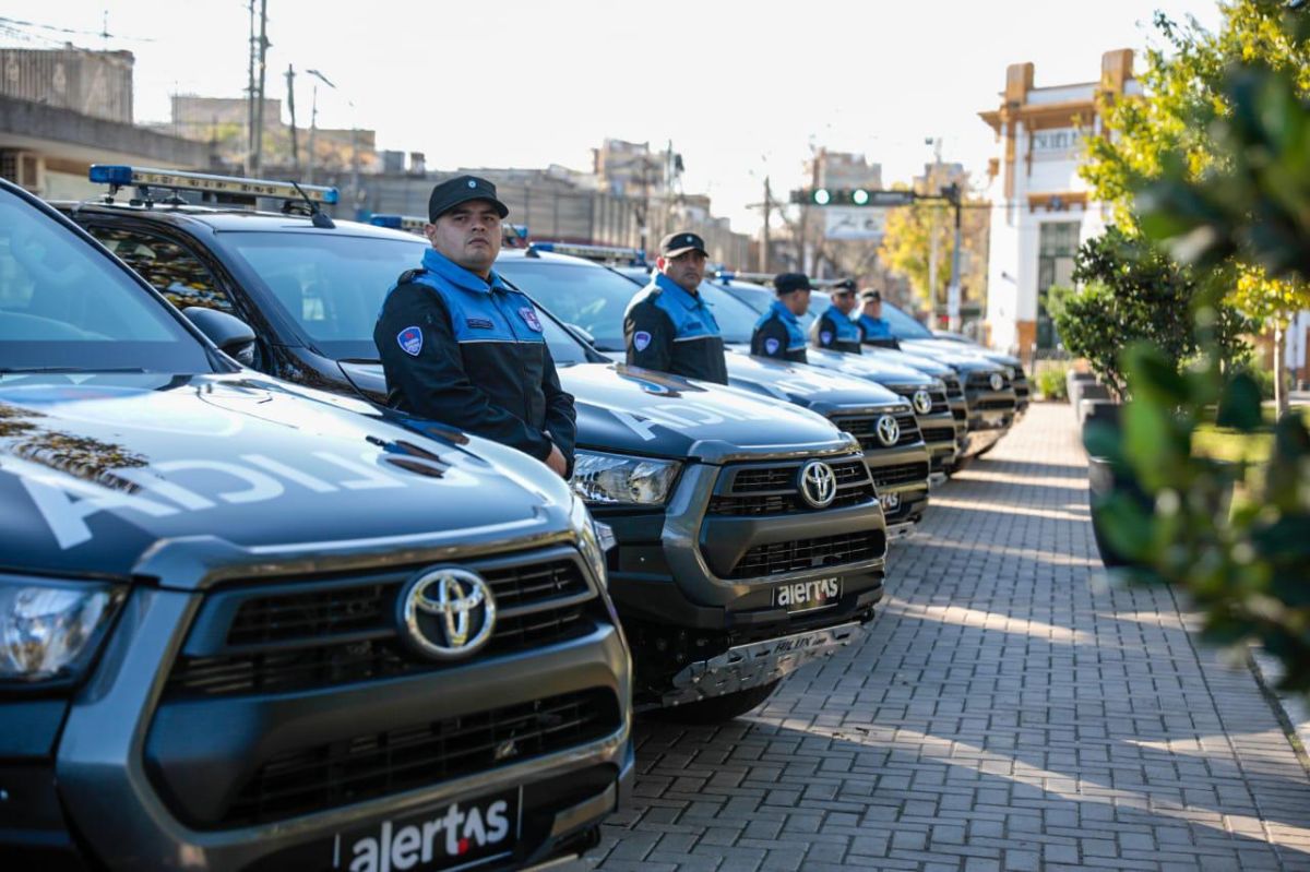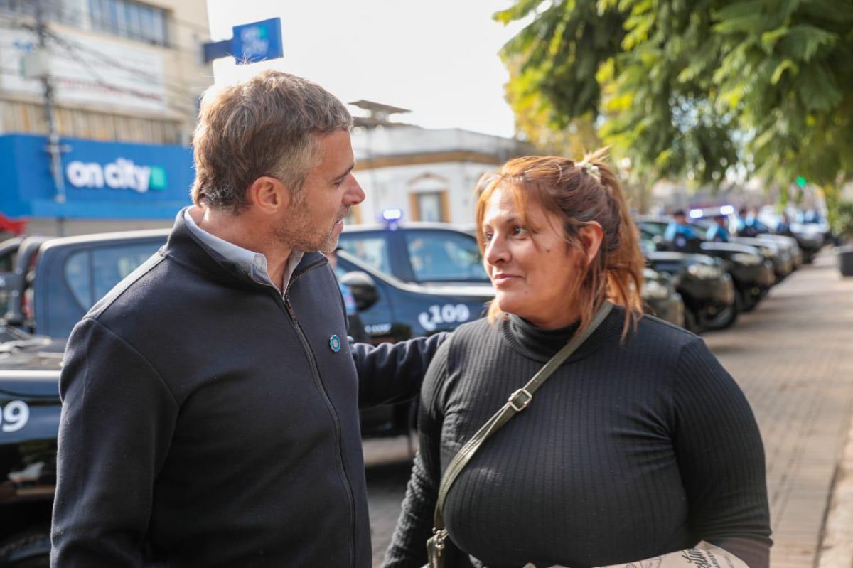 Durante la presentación de los móviles en el Paseo del Centro, el jefe comunal destacó: “Estos nuevos móviles nos permitirán seguir intensificando la presencia en los barrios, localidades y zonas comerciales de Pilar".