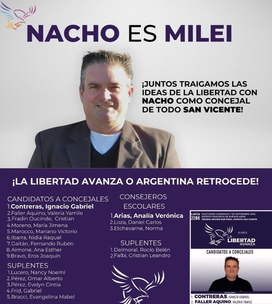 Contreras es propietario de la cadena “Lácteos Mi Viejo” y encabezó la lista municipal de La Libertad Avanza en las elecciones del pasado 7 de septiembre, donde obtuvo una banca en el Concejo Deliberante de San Vicente. Tenía previsto asumir el 10 de diciembre, pero su situación judicial podría complicar su futura asunción.